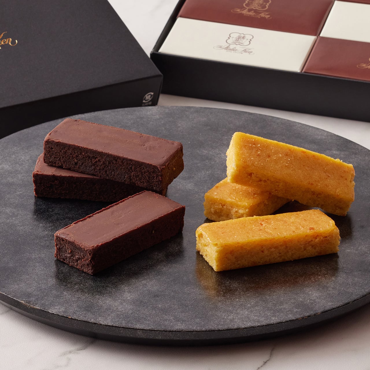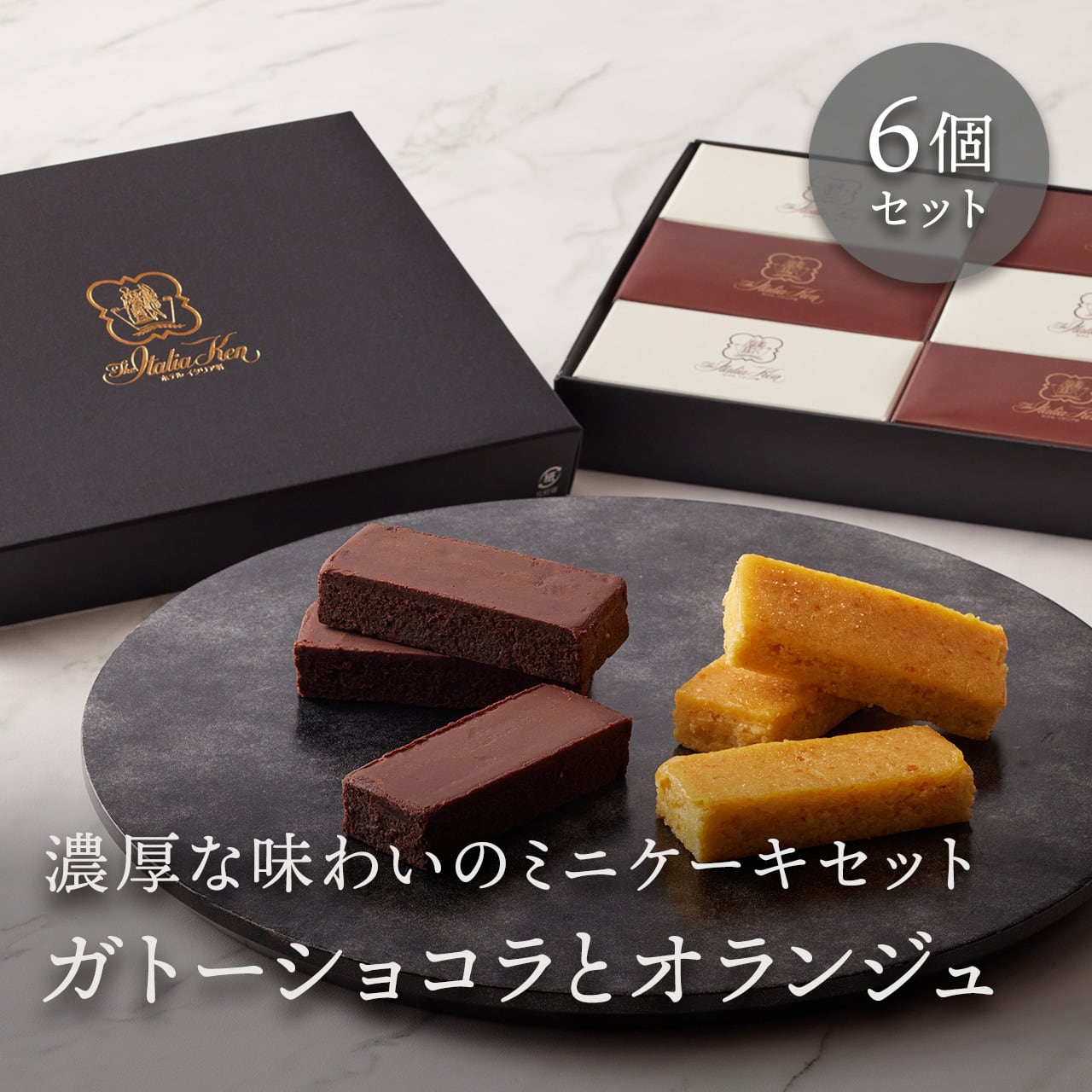 濃厚で口どけの良いガトーショコラと、フレッシュなオレンジの酸味と爽やかな甘さを楽しめるオレンジケーキのセットです。