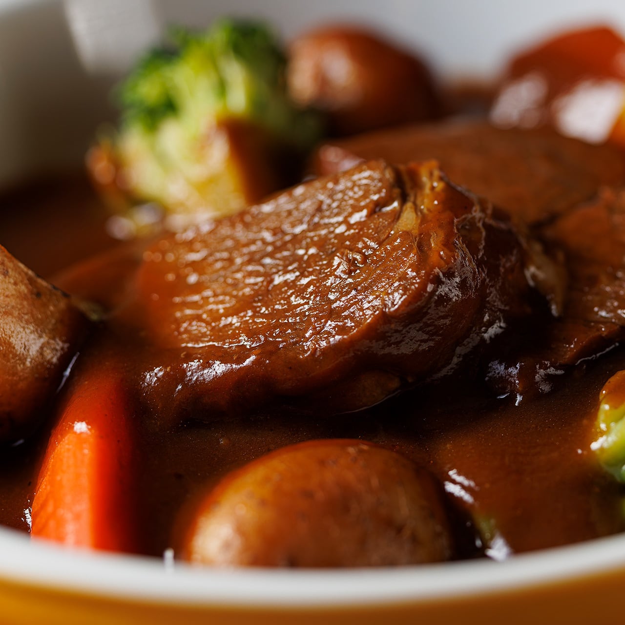 やわらかく煮込まれた牛肉の旨味と、赤ワインの芳醇な香りが重なり、一口ごとに懐かしさと贅沢さが広がります。