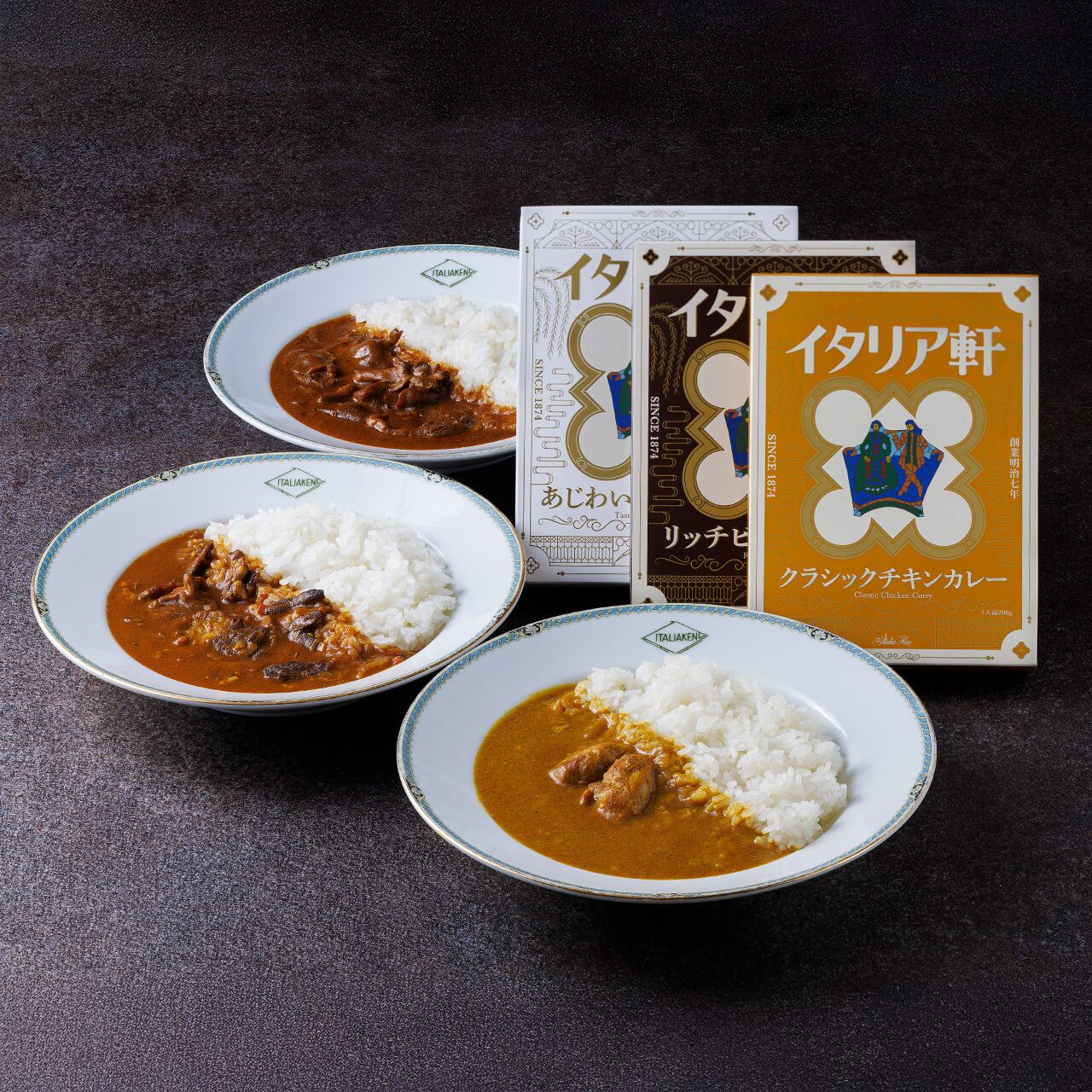 イタリア軒のレトルトカレーシリーズ3種との特別セット商品です。