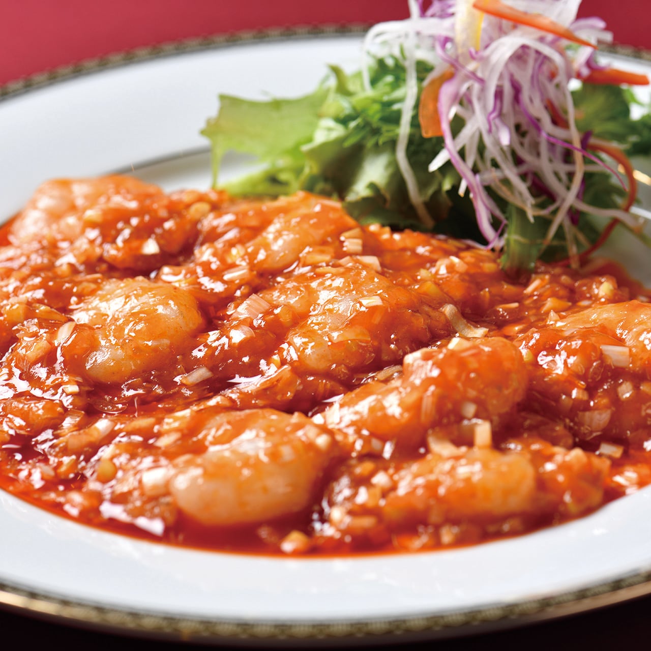 殻をむいた海老に丁寧に下味をつけて旨味を凝縮し、特製のコクのあるチリソースと絡めてワンランク上の味わいを表現しました。