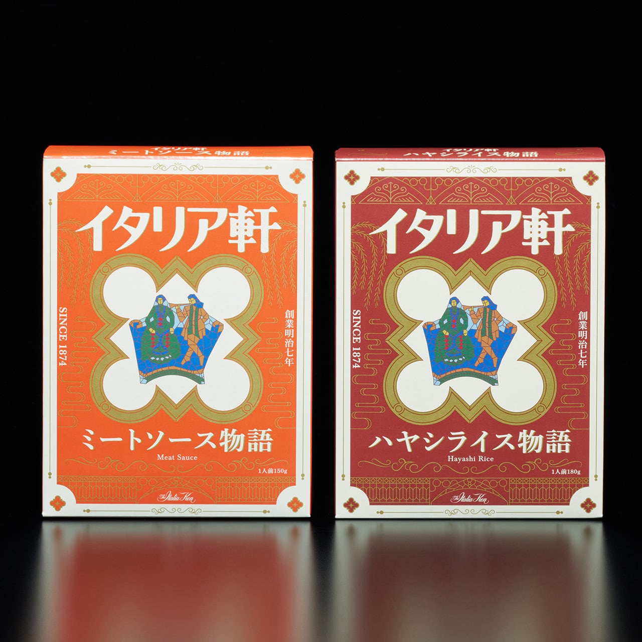 イタリア軒のレトルトシリーズより、特に人気の高い「ミートソース物語」と「ハヤシライス物語」をセットにした「2種セット」。